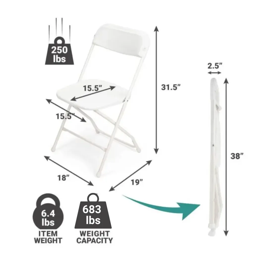 Sturdy, simple, and ready for any event. These commercial-grade folding chairs are built for comfort and convenience, whether you're hosting a backyard BBQ or a wedding reception. Lightweight for easy setup, but tough enough for repeat use.